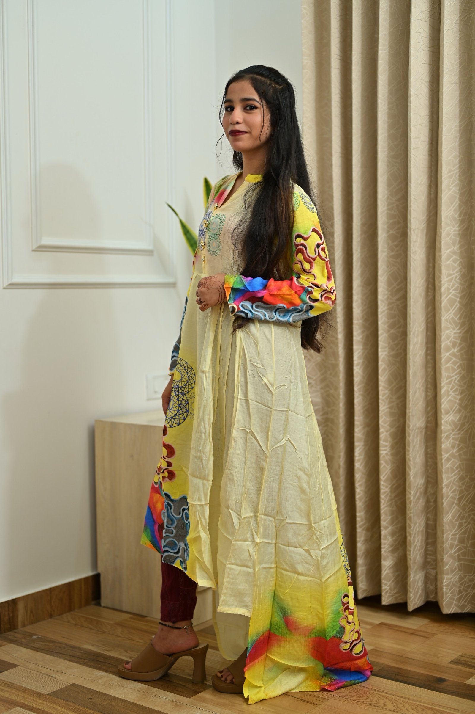 Step into a world of color and creativity with our Mystic Mirage kurti – a wearable art piece designed to break monotony and celebrate individuality.